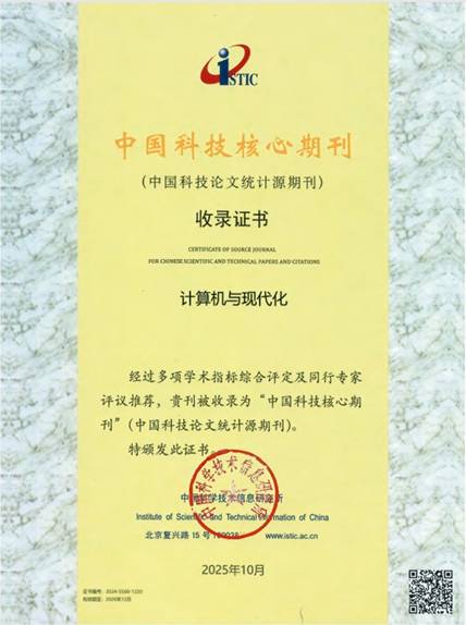 10月30日,中国科学技术信息研究所在北京发布“2025年中国科技论文统计结果”,《计算机与现代化》继续入选为“中国科技核心期刊”(中国科技论文统计源期刊)。这标志着本刊自2009年首次获评以来,已连续16年保持这一重要学术地位。